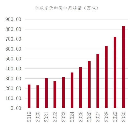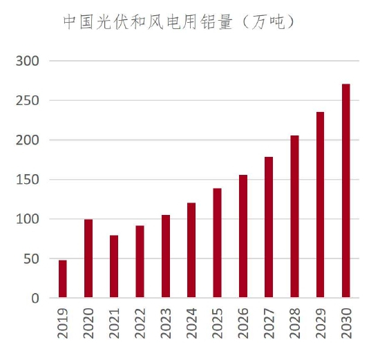 图表17:中国光伏和风电用铝增量预测(万吨)