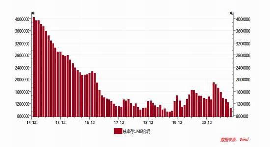 国内铝社会库存和上期所库存目前也低于历史均值水平,整体国内库存总量并不高。