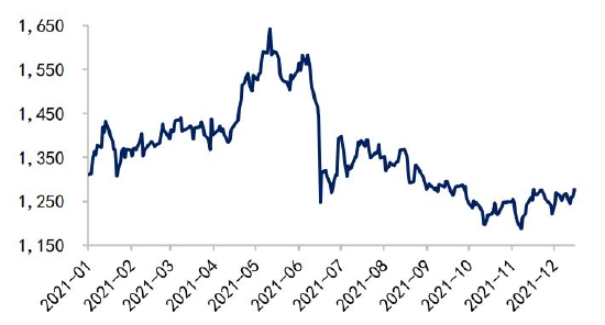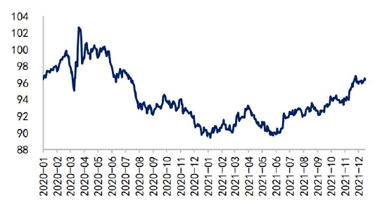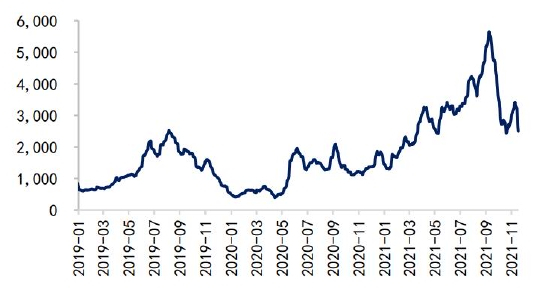 另外,还需关注海运费和汇率对进口成本的影响。随着全球疫情的稳定,波罗的海干散货指数从2021年10月上旬的高点快速回落近60%,虽然近期由于奥密克戎的出现指数有所反弹,但预计难以突破前期高位,向下仍有回调空间,海运费价格的回落降低了进口端成本。但美元存走强预期,人民币有贬值压力,在一定程度上提升了进口成本,不过预计汇率影响相对有限。