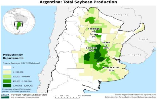 图16 阿根廷大豆种植分布