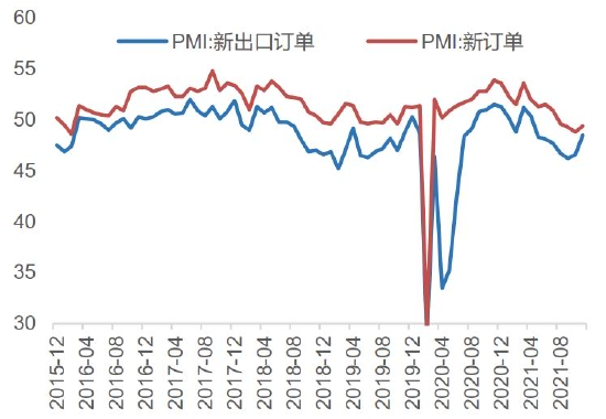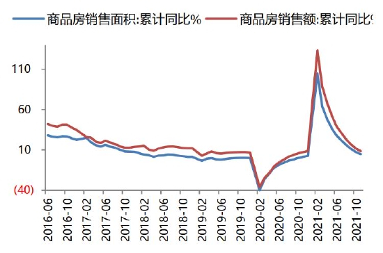 作为拉动经济的三架马车,投资、出口及消费在2021年下半年均面临回落压力,细分项看21年11月固定资产累计同比增速下降至5.20%,而消费中21年11月社消额当月名义同比增速下降至3.90%,另外房屋销售面积累计同比增速在四季度亦录得较大降幅,降至4.84%。而出口方面,虽在4季度略有改善,但随着国外疫情防控常态化以及供应链逐渐回复,出口需求回落亦是大概率事件。国内经济整体面临较大下行压力。