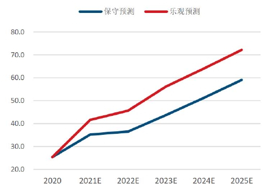 图52:2020-2025年光伏支架铝新增需求量预测(万吨)