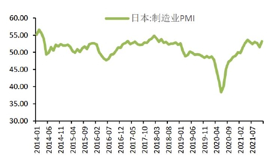 由于全球各地区疫情防控形势不同,因此不同地区的PMI指数运行情况略有差异。美国和日本PMI指数基本在2021年3月份左右见顶,欧洲地区在2021年6月份左右见顶。而国内PMI指数在2021年3月份小幅回暖之后,便成持续下行态势。