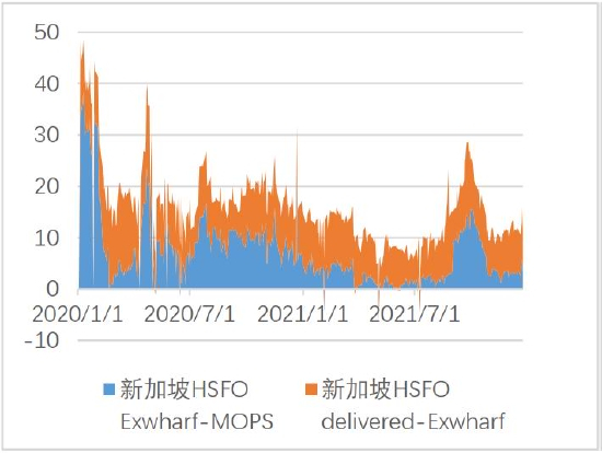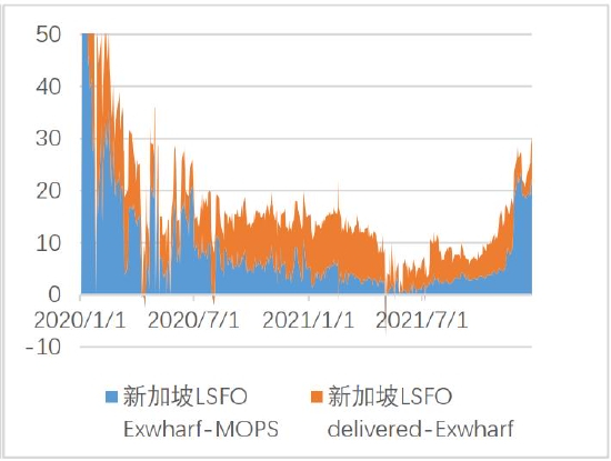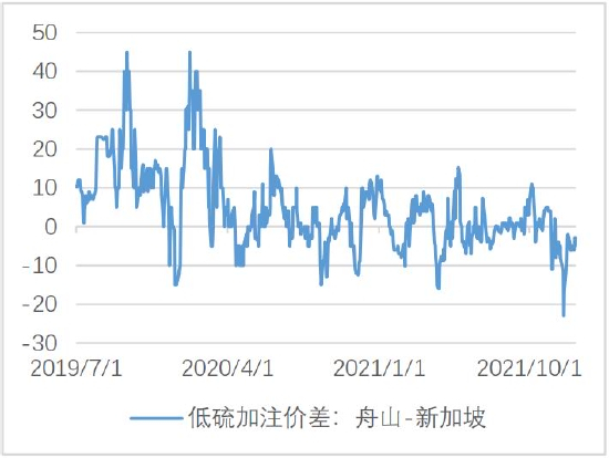 从利润来看,2021年上半年新加坡地区加注利润明显低于2020年下半年水平,低硫受到中国市场放量的影响,利润一度跌至0附近。下半年高、低硫阶段性冲高行情拉动了对应产品的现货升水,使加注价差大幅走强。
