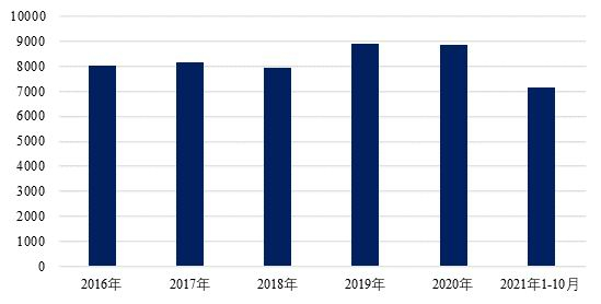 中国是世界第一纸浆进口国。主要从加拿大、芬兰、美国、俄罗斯、智利、瑞典、白俄罗斯、德国、阿根廷等国家或地区进口。从进口注册地来看,中国针叶浆主要进口注册地以山东省、浙江省、江苏省、重庆市、北京市为主2021年1-10月针叶浆进口量约为713.5万吨。2016年至2018年针叶浆全年进口量在800万吨左右,2019年针叶浆全年进口量为891.12万吨,2020年针叶浆全年进口量约为886.18万吨,2021年预计全年进口量在860万吨左右。中国木浆行业的产能近年呈现稳步增长的格局,2020年的年度木浆总产能约为1490.06万吨。纸浆行业呈现非标品供应宽松,基准交割品针叶浆供应紧缺的特点,全球阔叶浆的产能远远大于针叶浆的产能。未来阔叶浆有一定的产能投放计划,针叶浆产能投放计划较少。