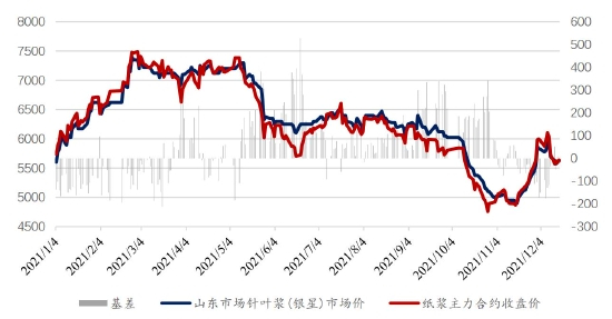 在世界经济复苏,货币政策宽松的大背景之下,2021年是大宗商品市场波澜壮阔的一年。纸浆价格也不断触及新高。在2021年收尾之际,海外物流受阻消息面的发酵再一次点燃市场行情,目前来看,该利好已几乎被市场消化,市场又重回基本面占主导。目前,国产浆开工稳定,港口到货政策,供应面相对稳定。下游各类纸企开工出现小幅下滑,需求端相对疲软。总体来看,近期市场较难出现单边行情,多以区间震荡盘整为主。
