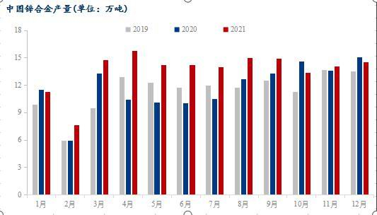 锌合金,2021年锌合金产量前高后低,锌合金企业维持低库存。展望2022年,包括株冶集团在内,炼厂系锌合金产能会继续扩张,锌合金供大于求的格局将进一步加剧。