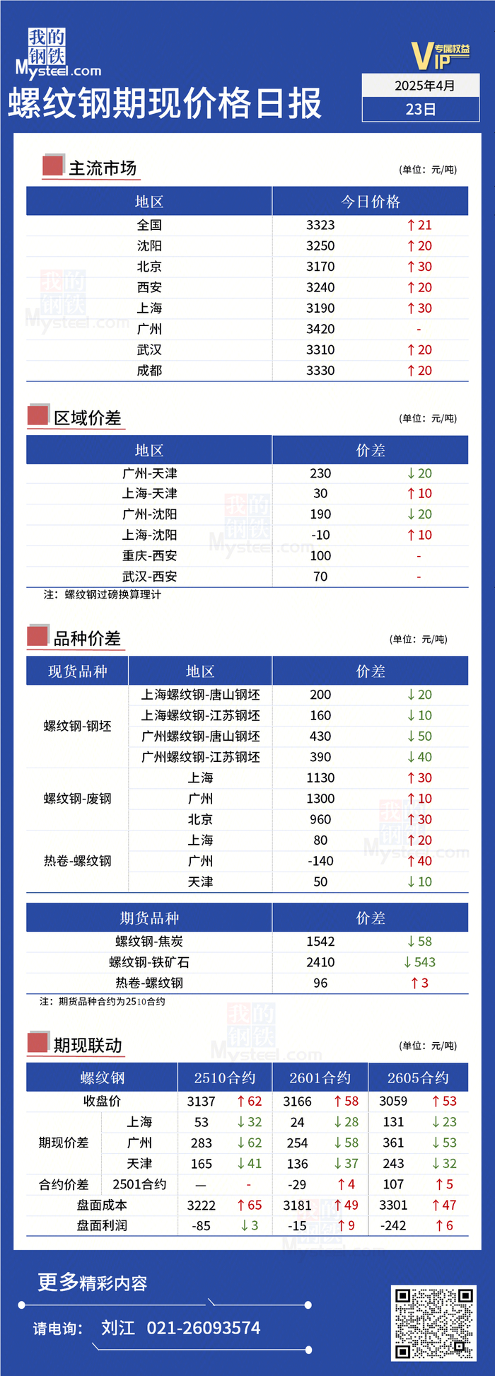 今日螺纹钢HRB400E20mm现货价格为3323元/吨,较上一交易日上涨21元/吨。10合约收3137元/吨,较上一交易日上涨62元/吨。01合约收3166元/吨,较上一交易日上涨58元/吨。