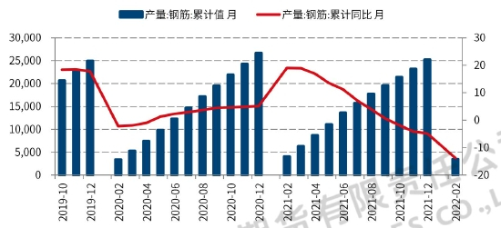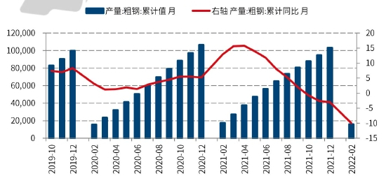 硅铁最大的需求在钢材端。国家统计局最新公布的数据显示,2022年1-2月我国粗钢产量为15795.8万吨,同比下降10.0%;1-2月钢材产量为19671.1万吨,同比下滑6.0%;1-2月生铁产量为13213.1万吨,同比下滑10.8%。