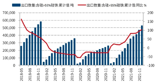 总体来说,2022年1季度硅铁两个次要的需求出口和金属镁需求大幅增加,尤其出口需求增幅较大,但钢材需求同比减少,使得硅铁需求总体平稳。