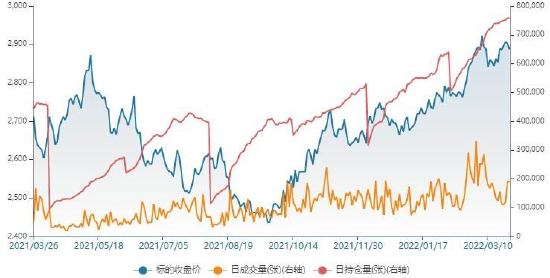 3月处于移仓换月阶段,主力合约将由05转至09合约,故建议交易2209合约。