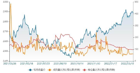 玉米期权成交量及持仓量认沽认购比率