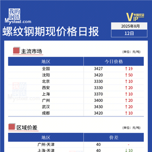 Mysteel日报:今日螺纹期现价格小幅上涨