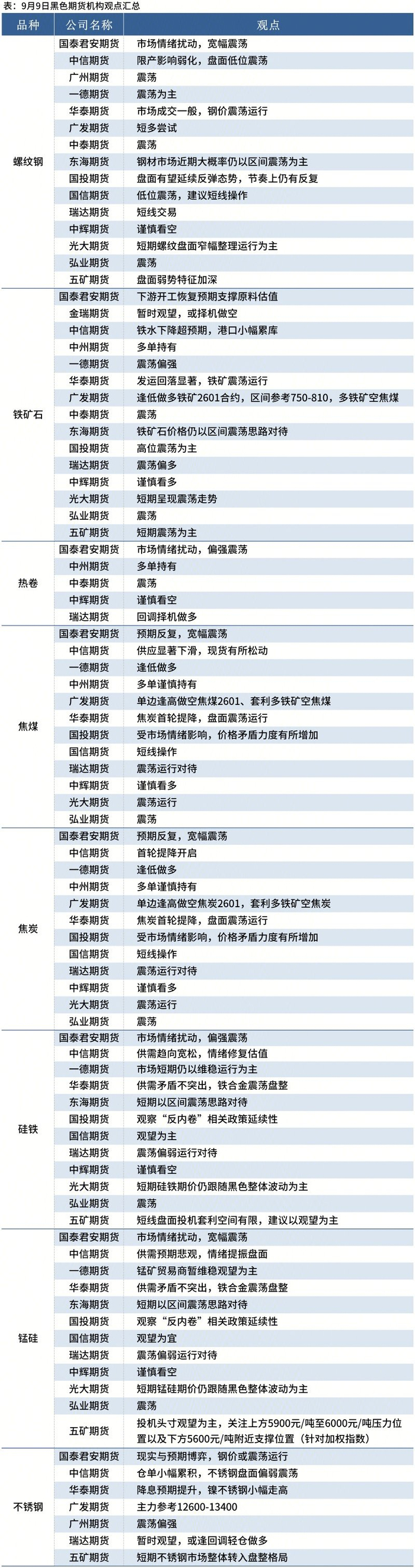 据Mysteel统计9月9日17家期货机构操作策略,其中多数机构料螺纹钢震荡运行,铁矿石震荡运行。具体汇总内容如下: