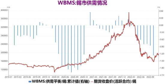 世界金属统计局(WBMS)公布的最新报告显示,2022年1-10月全球锡市场供应短缺1.26万吨,与2021年1-10月的总产量相比,全球报告的精炼锡产量下降了3.7万吨。2022年1-10月中国报告的总产量达到13.39万吨。而中国的表观需求比上年同期低20.6%。2022年1-10月全球锡需求为29.60万吨,比2021年同期低8%。2022年10月精炼锡产量为3.15万吨,需求为3.41万吨。
