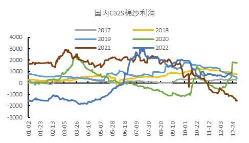 2022年上半年,国内棉花价格高,上游价格向终端传导不畅,纱厂利润压缩甚至跌为负值。下半年,随着棉价大幅下跌,企业利润扭负为正,利润得到修复,库存积压局面有所改观。