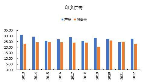 图9 印度棉花产需格局(百万包)