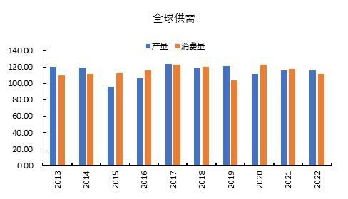 图3 全球棉花供需格局(百万包)