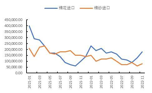 图12 棉花棉纱进口(吨)