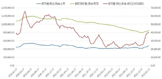截至2月23日,上海国际能源交易中心公布的交易所原油仓单数据为1016.3万桶,原油库存仓单从前期低点197万桶触底之后持续回升。