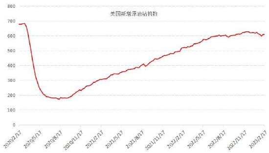 美国能源信息署(EIA)数据显示,截至2月17日当周,美国原油产量1230万桶/日,较前一周持平。美国能源企业减少石油和天然气钻井数量,且降幅为2020年6月以来最大。能源价格下跌,开采成本增加,石油和天然气供应充裕,美国能源企业石油和天然气活跃钻井平台三周来第二度减少。通用电气公司的油田服务机构贝克休斯公布的数据显示,截至2月17日的一周,美国在线钻探油井数量607座,比前周减少2座;比去年同期增加87座。
