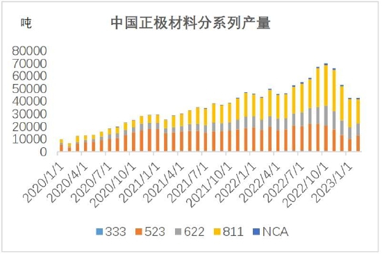 图44:中国三元正极材料分系列产量