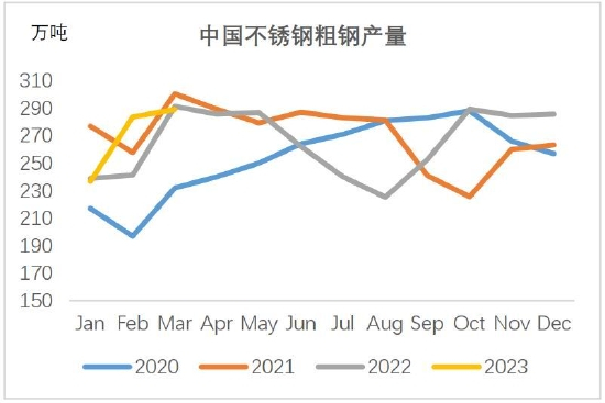 据Mysteel月初调研,2023年2月国内新口径国内41家不锈钢厂粗钢排产290.68万吨,月环比增加21.8%,其中300系158.27万吨,月环比增加15.9%。印尼2月排产28.9万吨,环比增加2%。月末再了解,钢厂实际生产恐怕不及预期。大钢厂都一度濒临亏损,何况外购原料的小钢厂。德龙响水五连轧和酸洗产线检修,暂定到月底,影响产量约上万吨;溧阳热轧酸洗设备调整,预计影响4-5天,影响产量2万吨左右。钢厂恢复生产后下游接单情况不佳,厂库压力较大,叠加印尼回流资源每月稳定在高位,国内冷轧去库任务艰巨,迫使钢厂再度减产应对。3月原料价格下行给出钢厂利润空间,同时市场预期库存开始去化,预计不锈钢产量至少环比持平2月,是否进一步恢复视市场情况而定。