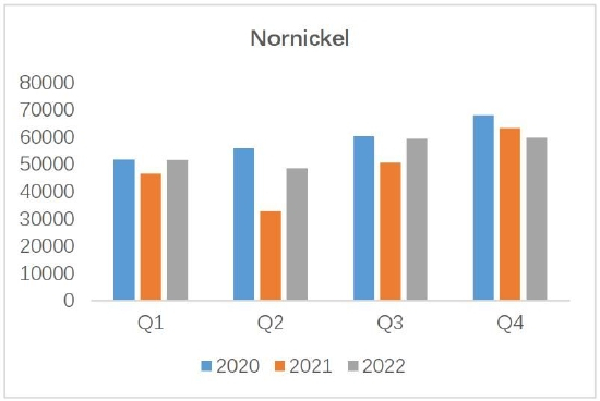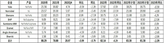 表1:全球主要镍企业季度产量/万镍吨