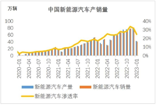 图47:中国新能源汽车产销量及渗透率