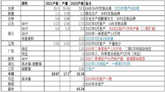 表2:2023年纯镍新增产能规划