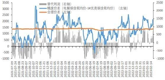 宏观方面,由于美国2月就业数据、通胀数据连续超预期,市场预计美联储将采取更加鹰派的政策路径,对于本轮加息周期的终端利率和紧缩政策持续时间预期持续攀升。美联储发布半年度货币政策报告再次强调了坚定致力于将通货膨胀率降至2%,并称持续加息将是“适当的”。市场预计美国联邦基金利率将逐步提高到美联储所宣称的5.25%—5.5%目标。而欧元区核心通胀率从1月份的5.3%上升至2月份的5.6%,创历史新高,也强化欧洲央行大幅加息的预期。不过国内CPI总体处于相对低位,2月制造业PMI全面好转,较1月上升2.5个百分点至52.6%。作为首个公布的2月重要经济数据,制造业PMI数据释放出我国经济有力复苏的积极信号,利多有色金属。行业方面,受海外铜矿扰动影响,我国港口铜精矿入港量减少,铜精矿周度进口指数环比下降,预计国内3月铜精矿供需偏紧。目前铜价高位,国内废铜供给增加或使3月粗铜产量环比增加,粗铜供需缺口将收窄。虽然中色大冶弘盛铜业产能40万吨高纯阴极铜项目投产,但大冶有色、浙江江铜富冶和鼎铜业、铜陵金冠、白银有色、青海铜业和江西铜业共250万吨精炼产能3—4月将进入检修期,中国3月电解铜生产量环比将下降。沪伦铜价比值围绕近5年均值波动,进口窗口关闭将限制中国铜精矿、粗铜及电解铜进口量。总之,3月国内电解铜供需将呈现紧平衡状态。