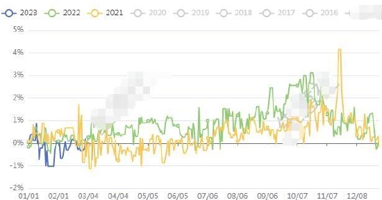 图2:近年沪铜主力基差对比图(单位:%)