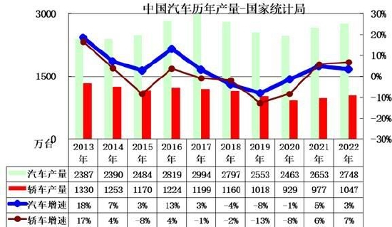 图16:中国汽车历年产量及增速(万辆,%)