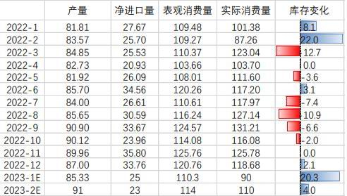 2022年12月,秘鲁国内动荡。截至1月30日,该国30%铜矿生产受限。目前Antapaccay矿山已经复产,但仍有部分铜矿处于停产状态。受自然灾害影响,矿业巨头Freeport位于印尼的全球第二大铜矿Grasberg矿场暂停采矿和矿物加工活动,预计持续至2月底,直接影响铜矿产量约3.5万吨。First Quantum位于巴拿马的Cobre Panama铜矿因港口运输存储容量接近临界点停止运营,且因供给规模校准不当,巴拿马海事局停止了其在港口的装载业务。同时,First Quantum在赞比亚的铜矿因矿难事故停止生产。总计受限铜矿产量约4.86万吨。
