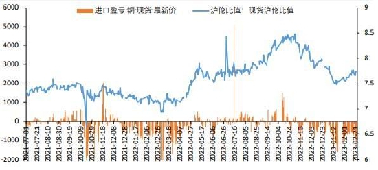 图8:精炼铜沪伦比值和进口盈亏情况
