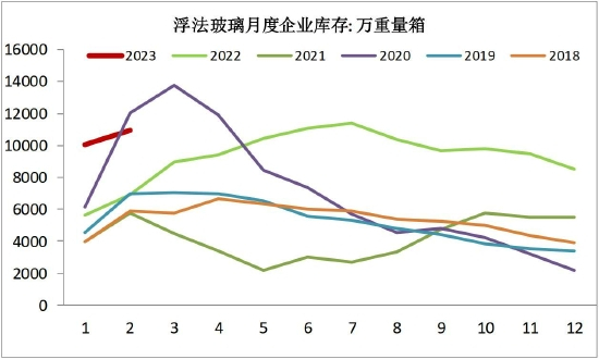 与2022年相似,元旦前后下游曾有阶段性备货,春节过后,下游补库动作尚显平淡。承接上一年度的高基数,库存压力是玻璃行业头顶的负担。可喜的是,1-2月玻璃企业库存累积速度慢于往年,玻璃企业库存于3月初见顶后持续五周去化,供需向好的状况得到延续。