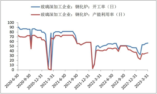 图3-7 深加工企业钢化炉开工率与产能利用率