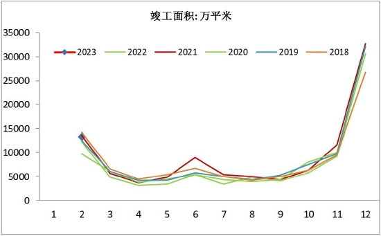 图3-6 竣工面积月度数据