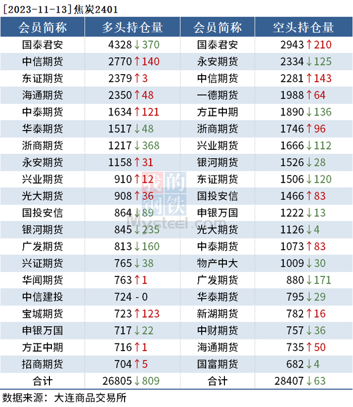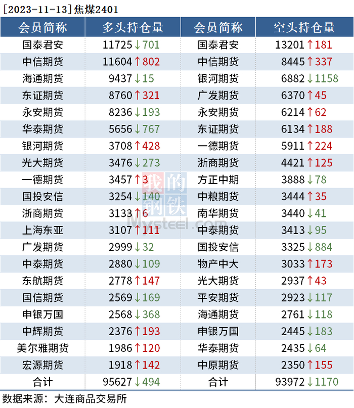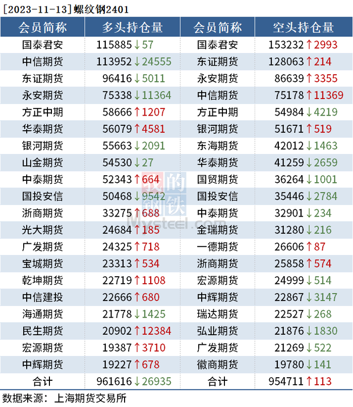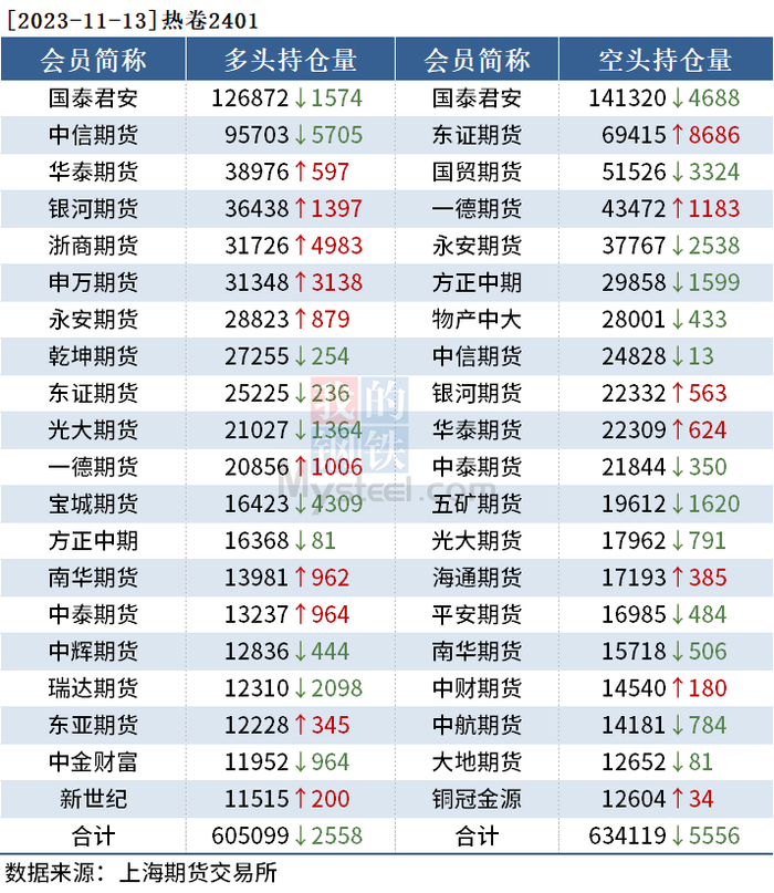 黑色持仓日报:铁矿石涨1.68%,中信期货减持2.4万手螺纹钢多单