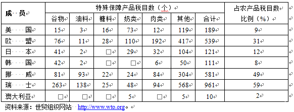 表6WTO部分成员特殊保障产品(SSG)税目数量