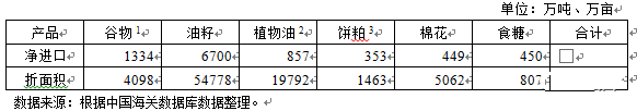 表42013年我国粮棉油糖净进口量折合耕地播种面积