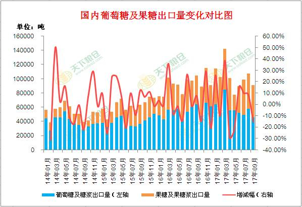 附图:国内葡萄糖及果糖出口量变化对比图