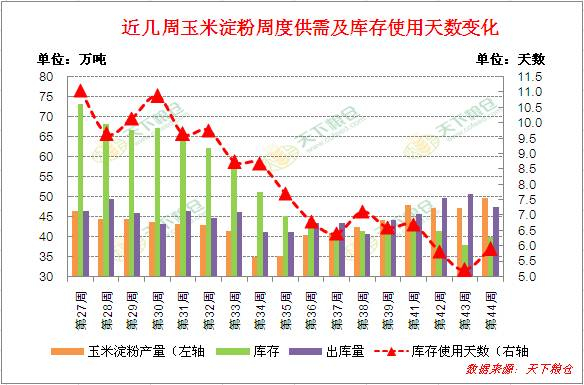 附图:近期国内玉米淀粉周度供需及库存使用天数