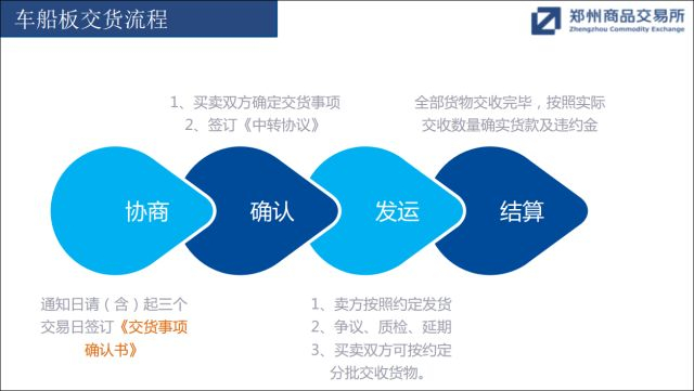 车(船)板交割是指,卖方在交易所指定交割计价点将货物装至买方汽车板以完成货物交收。车(船)板信息包括:品种、果径、等级、产地、数量、交割计价点等。