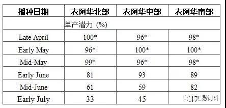 玉米单产水平在5月15日种植日期后开始下降,6月1日之后则迅速下降。根据2014-2016年最新研究数据,对于衣阿华州西北部、中北部和中部爱荷华州的玉米而言,4-5月间的成熟度则是关键因素,往往全季杂交品种比短季杂交品种的产量更高。而在上述七个地点,6月上旬和下旬的播种日期并未导致杂交品种间的相对成熟度差异。