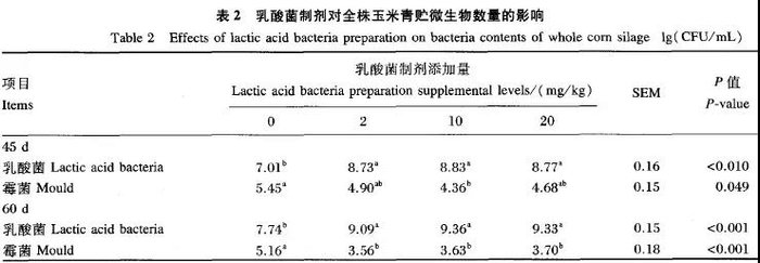 2.2 乳酸菌制剂对全株玉米青贮微生物数量的影响