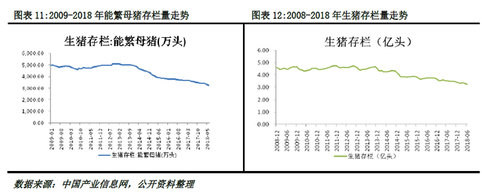 (2)国内产需缺口是生猪产品进口的根本原因。我国猪肉产品进口贸易中,一般贸易方式一直占主导地位,在2018年第一季度中我国以一般贸易方式进口猪肉31.3万吨,占同期我国猪肉进口总量的96.6%,这表明我国生猪进口主要是用来满足国内的需求。在我国随着收入水平的不断提高,居民对生猪产品的要求和需求也在不断的提高,但是由于我国生猪行业并没有形成规模化产业,散户养殖仍占较大的比重,生猪行业供给受到“猪周期”的影响,供给的持续性与稳定性不佳,外来冻肉在食品加工行业中体现出其价格相对稳定,供应较为充足的优势。据农业部数据显示,截至2018年2月我国能繁母猪存栏量为3397万头,同比下降5%,生猪存栏量为3.3亿头,同比下降4.7%。从存栏量上看,本轮猪周期触底之后,市场整体供应又有趋向偏紧的可能,供给的周期性缺口需要更多的进口猪肉来进行弥补。