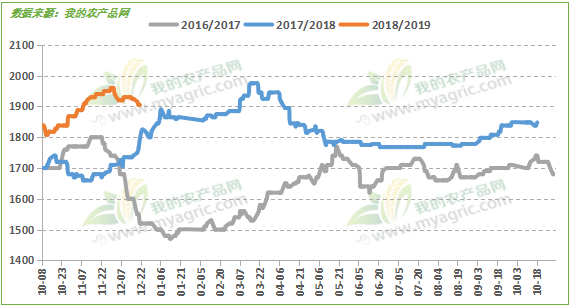 与往年相比,今年东北玉米潮粮上市推迟1-2个月时间,基层农户受到快播等媒体引导卖粮意愿下降。在10-11月掌握粮权的农户在价格博弈中占据上风,下游用粮企业及贸易商采购难度增加,玉米现货价格维持坚挺表现。进入到12月以后,进口玉米、高粱、大麦等替代产品预期增强,囤货看涨的贸易商及农户卖粮心态发生松动,港口陈玉米到货增加。但是吉林、辽宁及内蒙部分地区受灾农户惜售情绪仍存,在玉米价格下跌后卖粮意愿再度下降,粮农仍有大量囤粮待售。