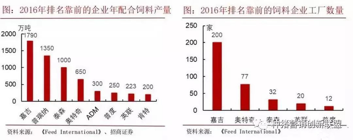 嘉吉:纵向一体化模式,饲料涵盖所有种类,年产1790万吨,拥有共200家饲料分厂;