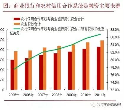 商业银行和农村信用合作系统是农业融资的主要来源。商业银行和农村信用合作系统提供的资金占 80%左右。